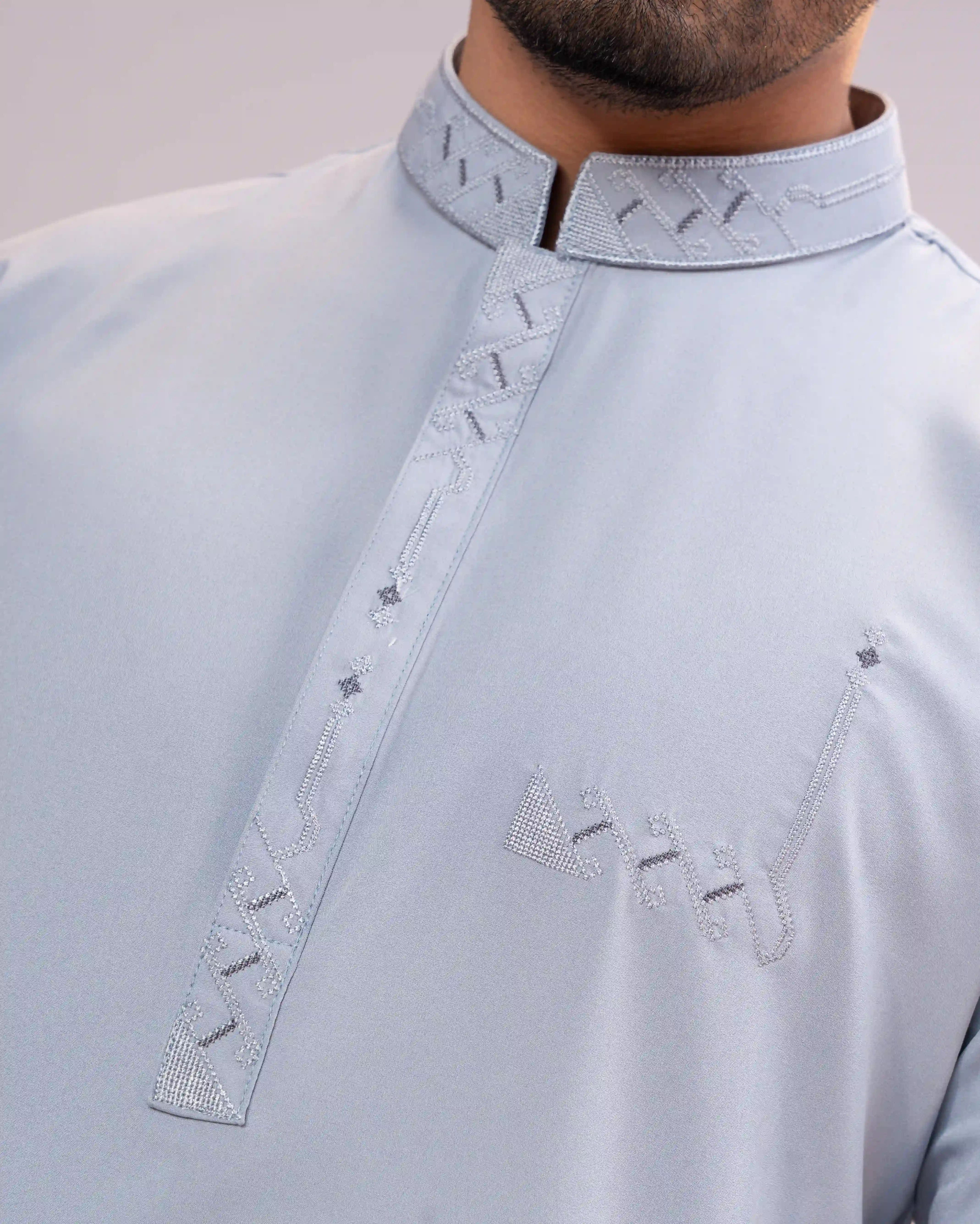 Elegant embroidery on collar, placket & pocket