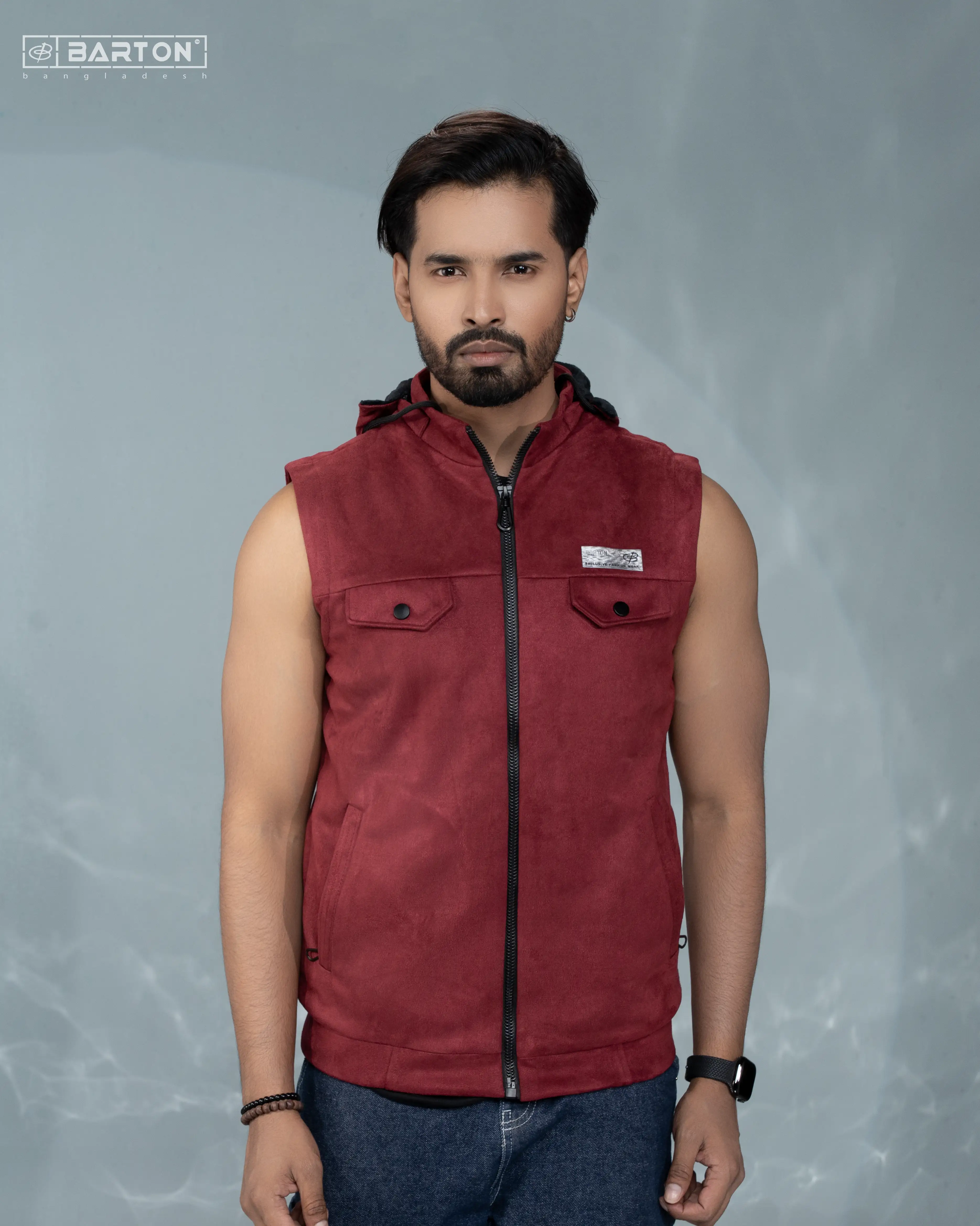 Upgrade your everyday style with the Barton Premium Leather-Bonded Sleeveless Hoodie, designed for those who love a bold, modern, and athletic look. Crafted from high-quality Leather Bonded fabrication and paired with a smooth China Taffeta inner, this sleeveless hoodie ensures durability, comfort, and a premium soft-touch feel.