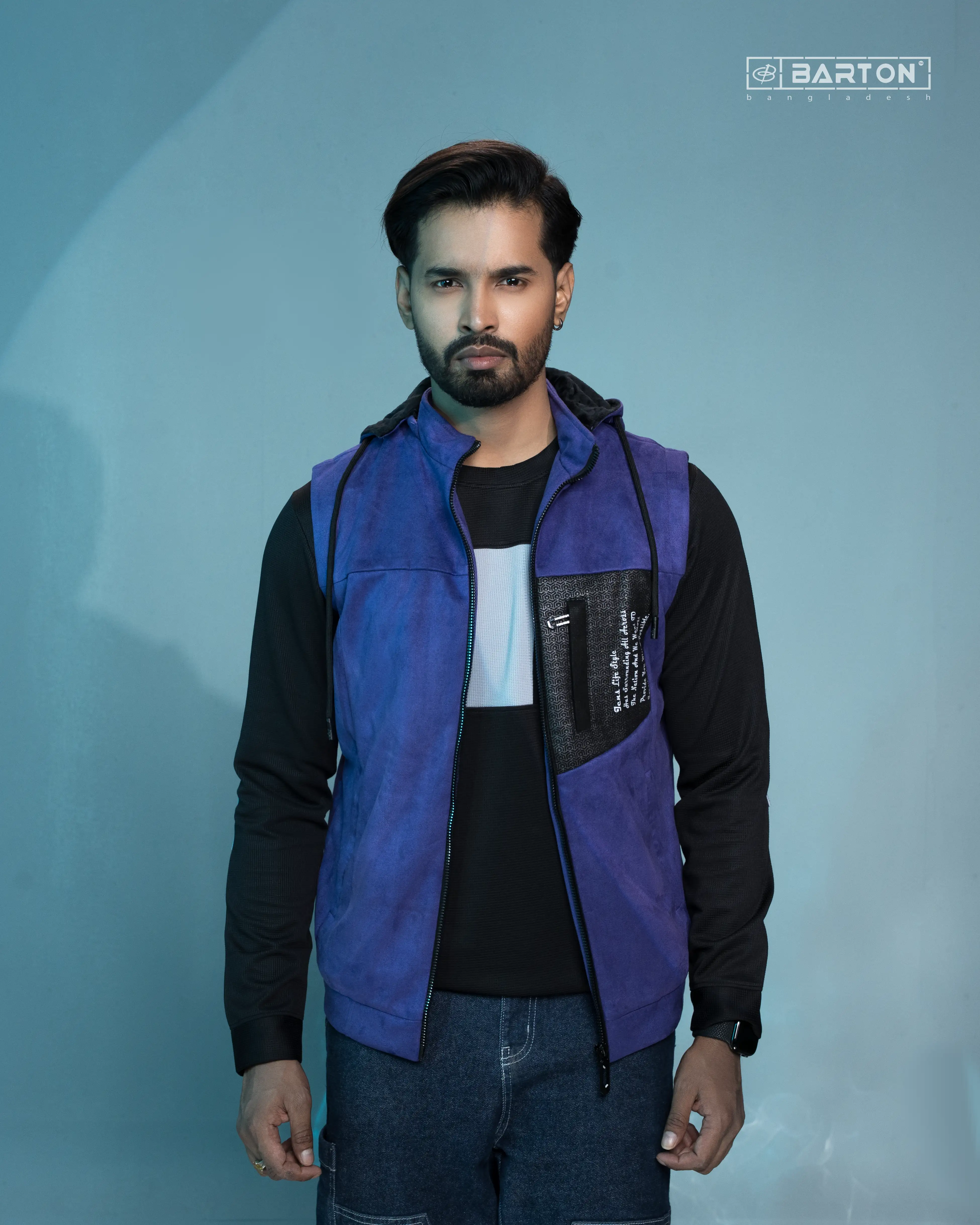 Featuring a full front zipperadjustable hood, and a contrasting textured chest pocket with graphic detailing, this sleeveless hoodie brings a unique streetwear vibe. The design in the image highlights a clean, sharp look—perfect for gym sessions, layering, or casual everyday wear.