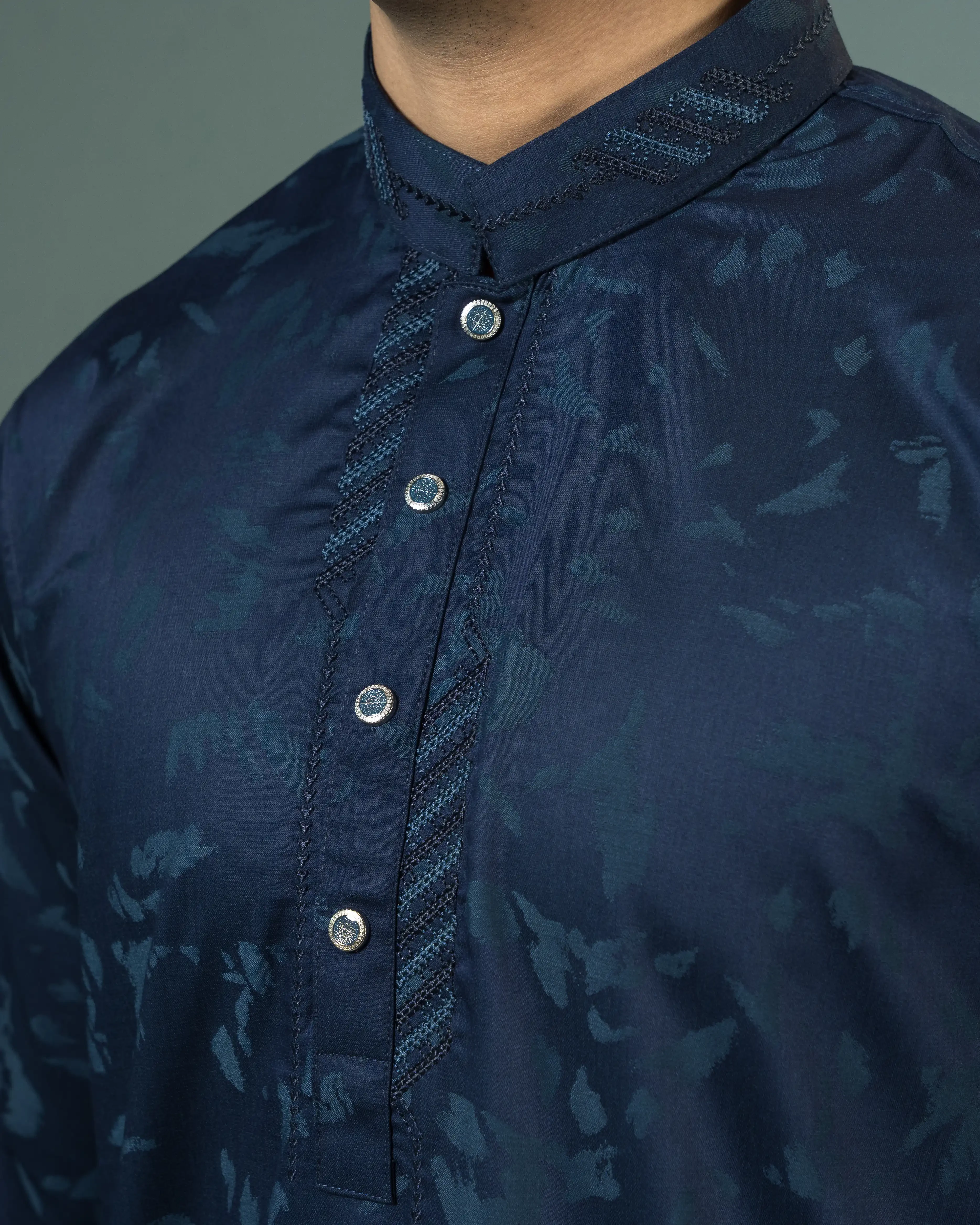 Elegant embroidery on placket and collar