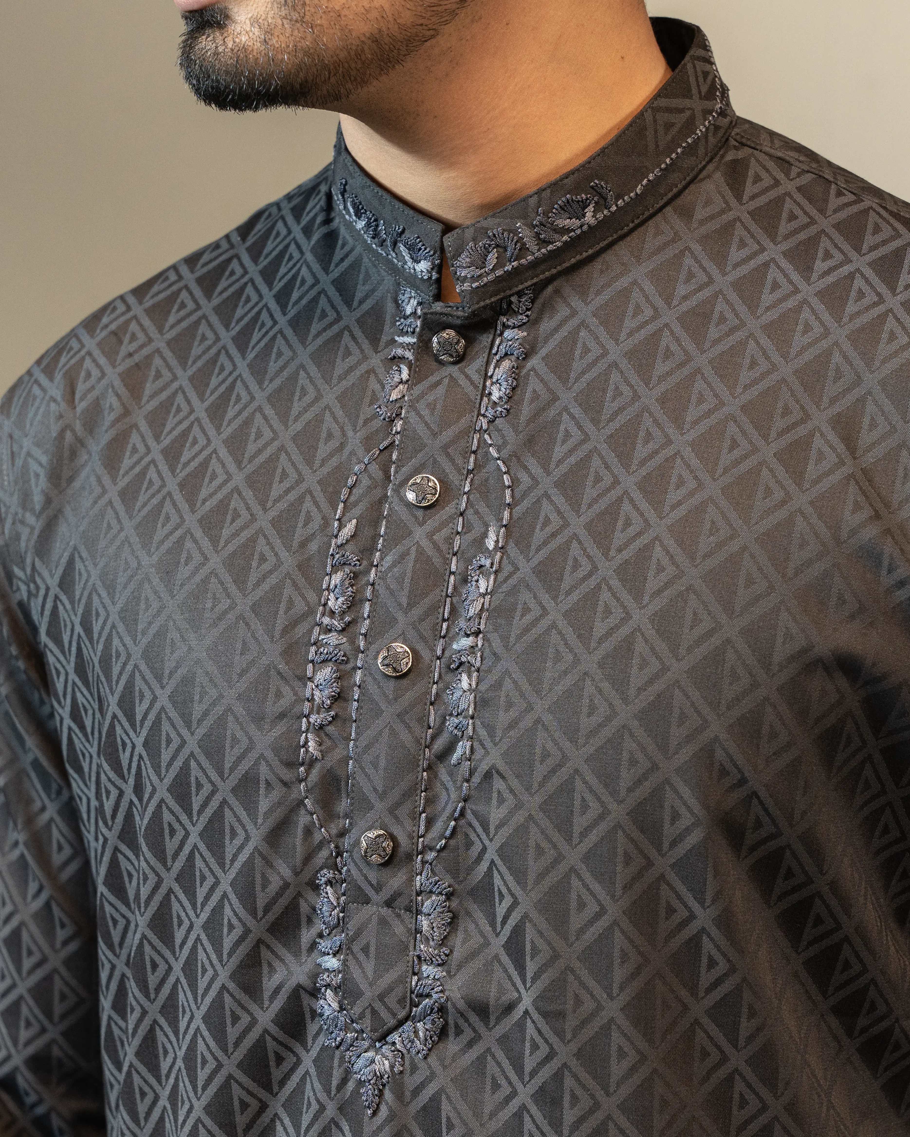 Featuring a mandarin collar and a modern tailored fit, this Panjabi delivers a perfect balance of tradition and contemporary style. Ideal for Eid, weddings, family gatherings, and special occasions, it pairs effortlessly with pajama or fitted trousers.