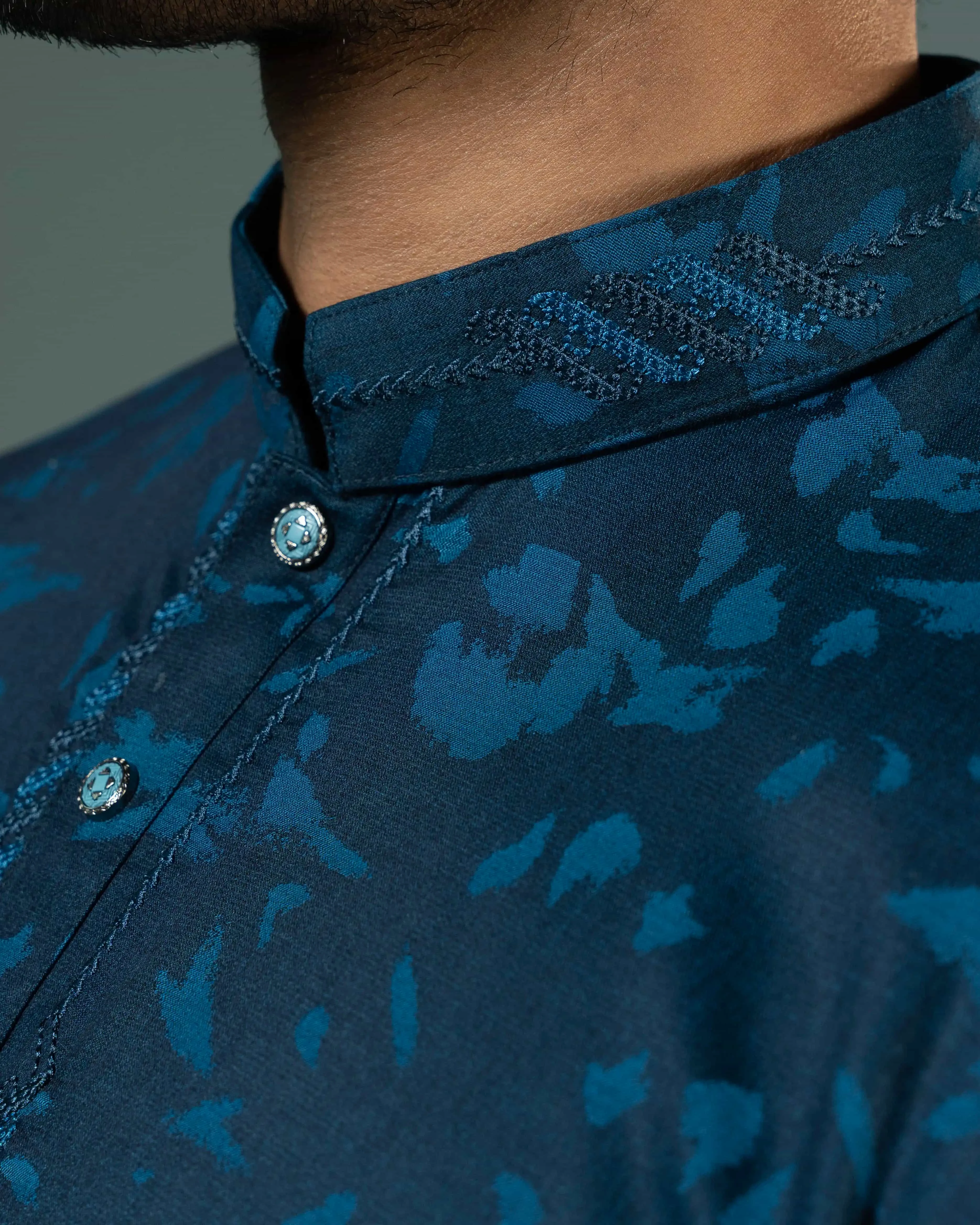 • Elegant embroidery on placket and collar