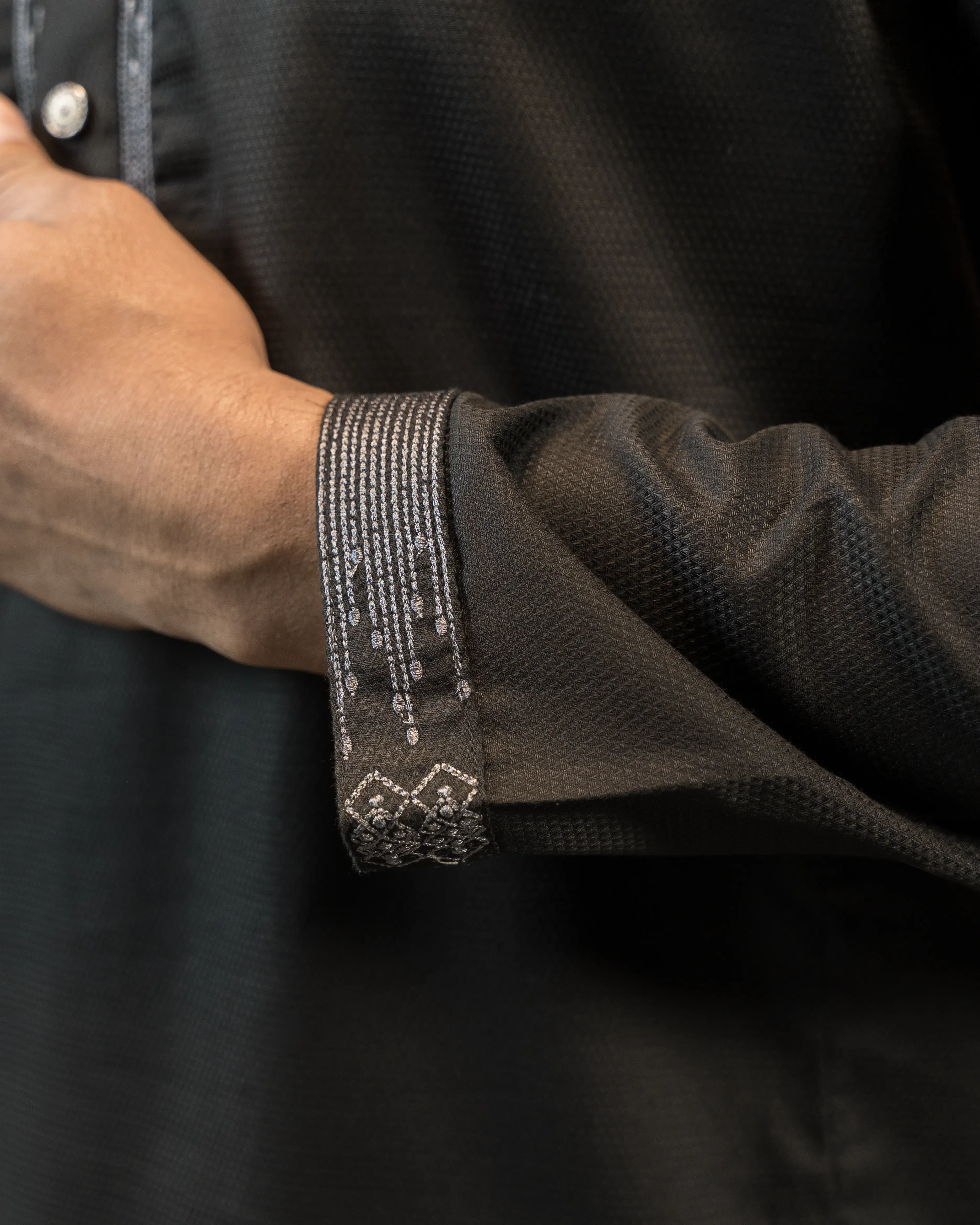Barton Men’s Black Panjabi – Indian Fancy Cotton Fabric with Embroidered Placket