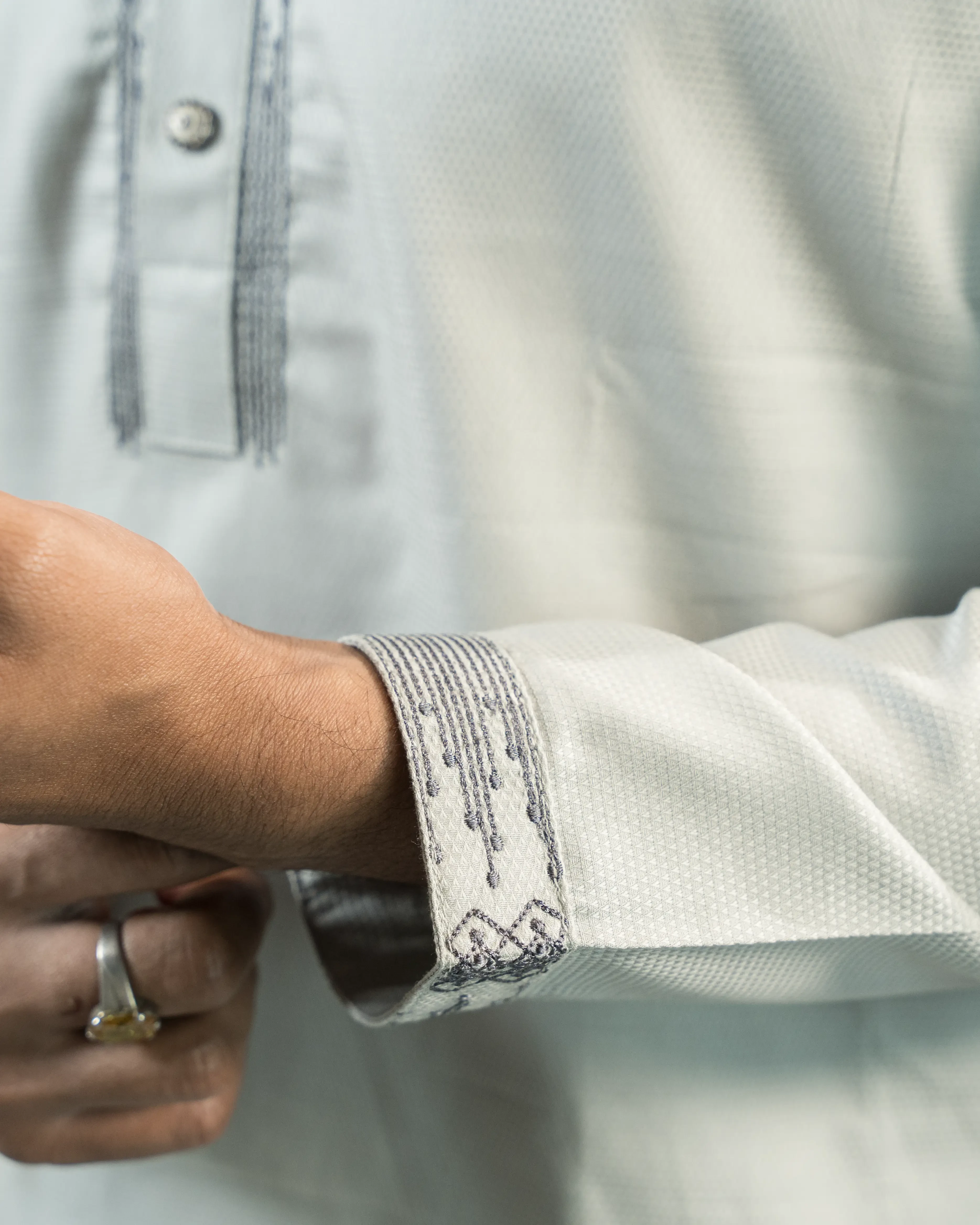 • Front placket embroidery detailing