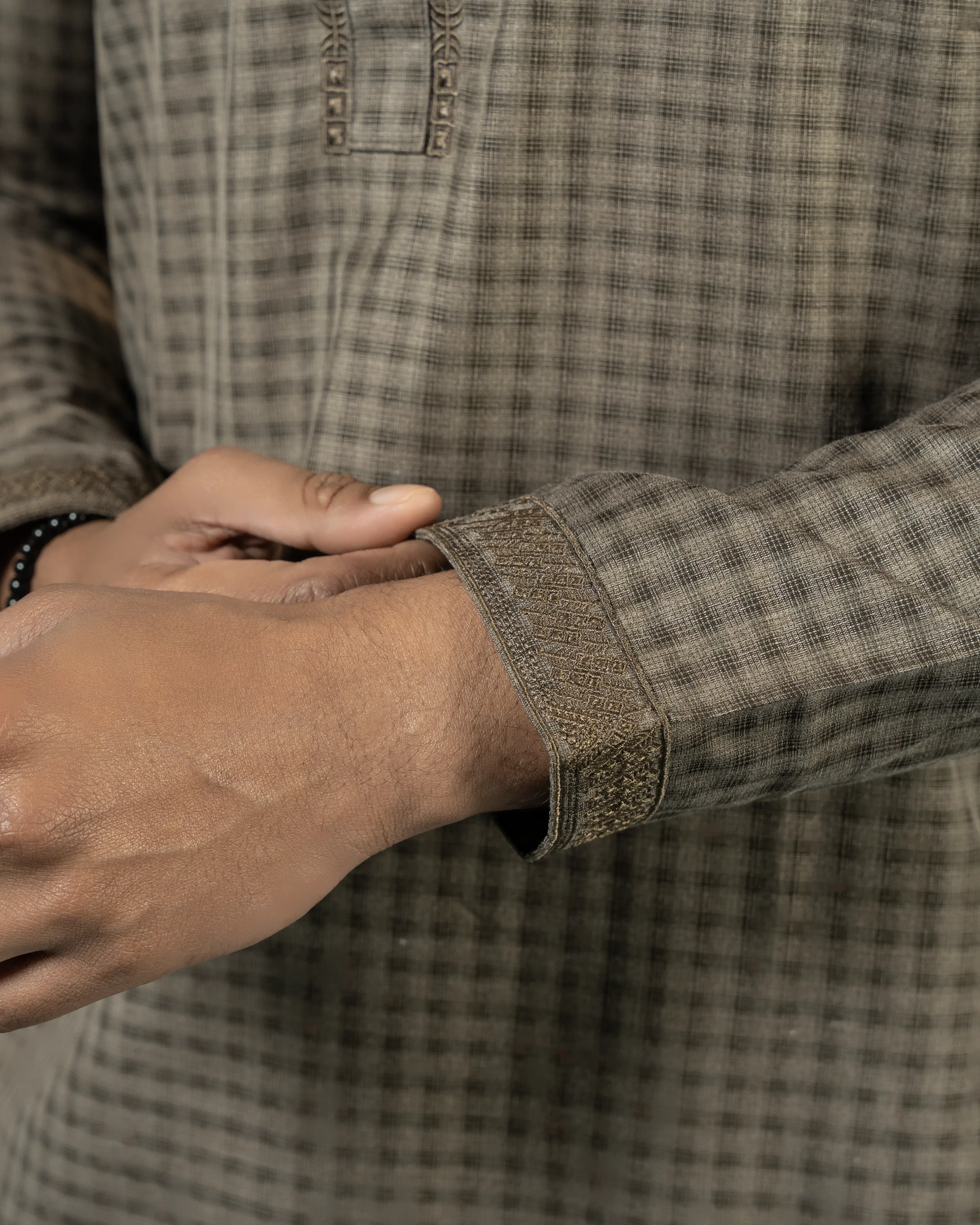 Elevate your traditional style with this refined Panjabi from Barton Bangladesh, crafted from premium Indian Check Cotton fabric for all-day comfort and breathability. The subtle check texture adds depth to the solid tone, making it a perfect balance of classic and contemporary.