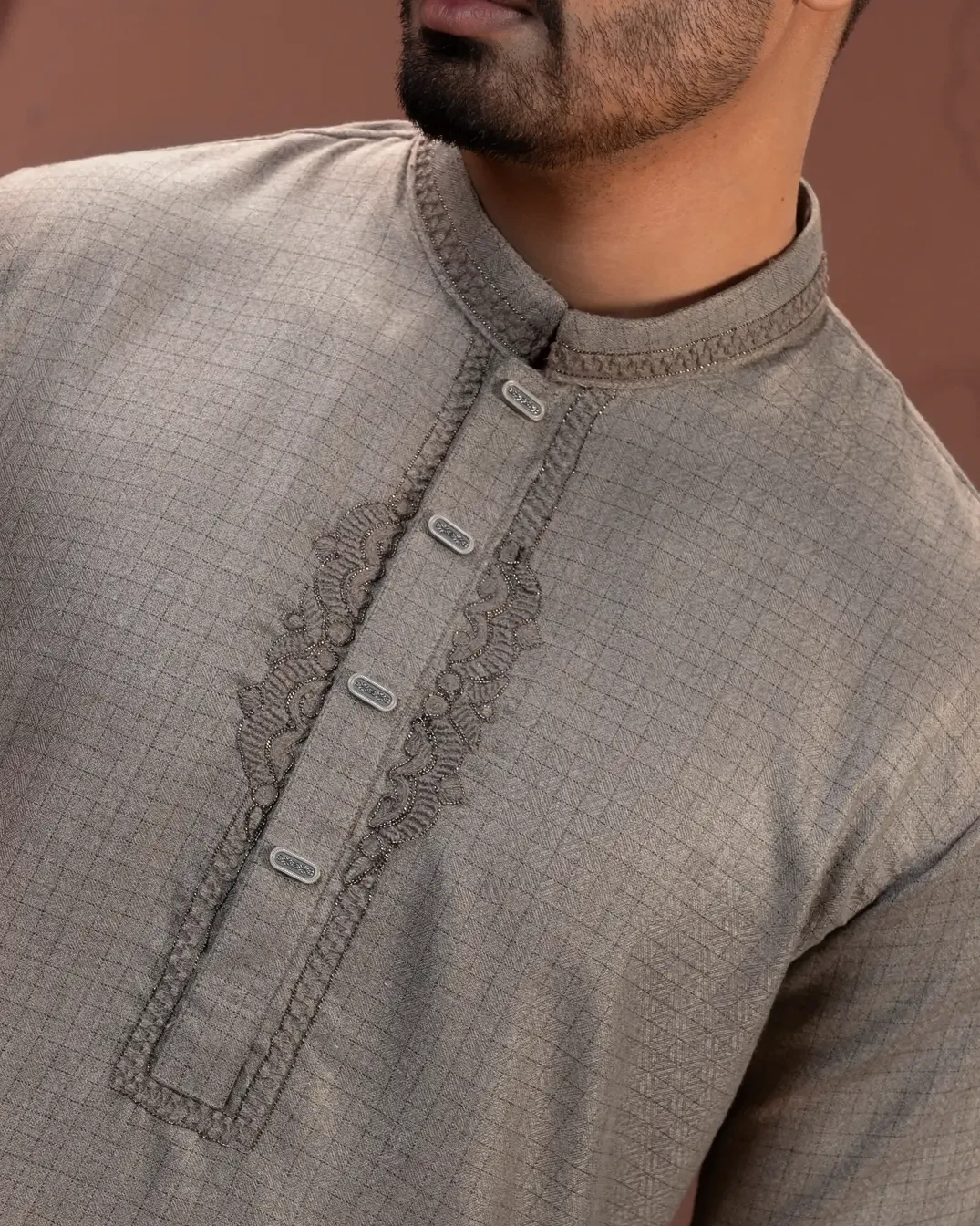 A stylish China snap button closure on the placket adds a clean, contemporary detail while ensuring easy wear and a polished look. Tailored for a comfortable yet smart fit, this Panjabi is perfect for Eid, cultural celebrations, and special occasions — offering the perfect balance of tradition, comfort, and sophistication.
