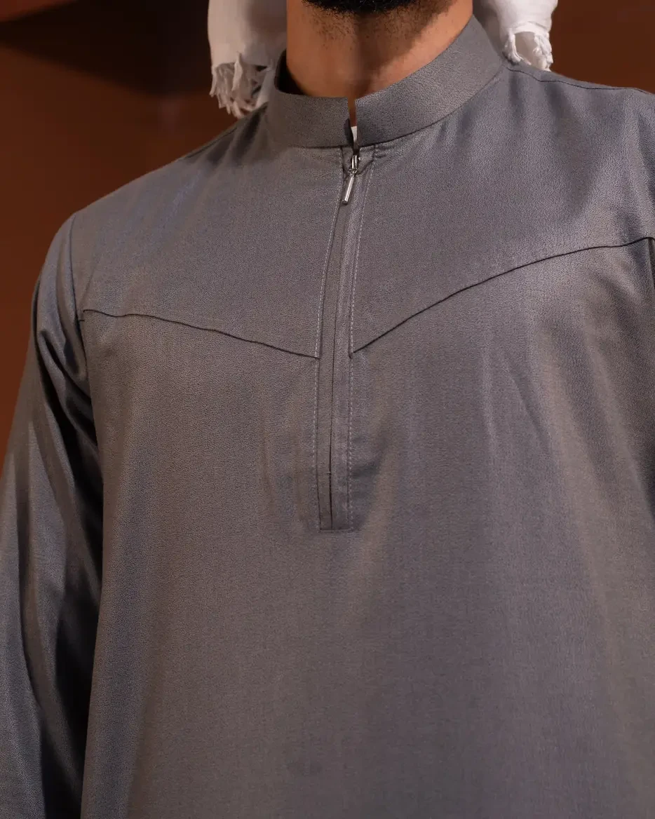 Designed with a modern Venn collar and a smart front zipper closure, this thobe blends classic modesty with contemporary detailing. The structured upper panel adds a sharp silhouette, while the breathable fabric ensures all-day comfort.