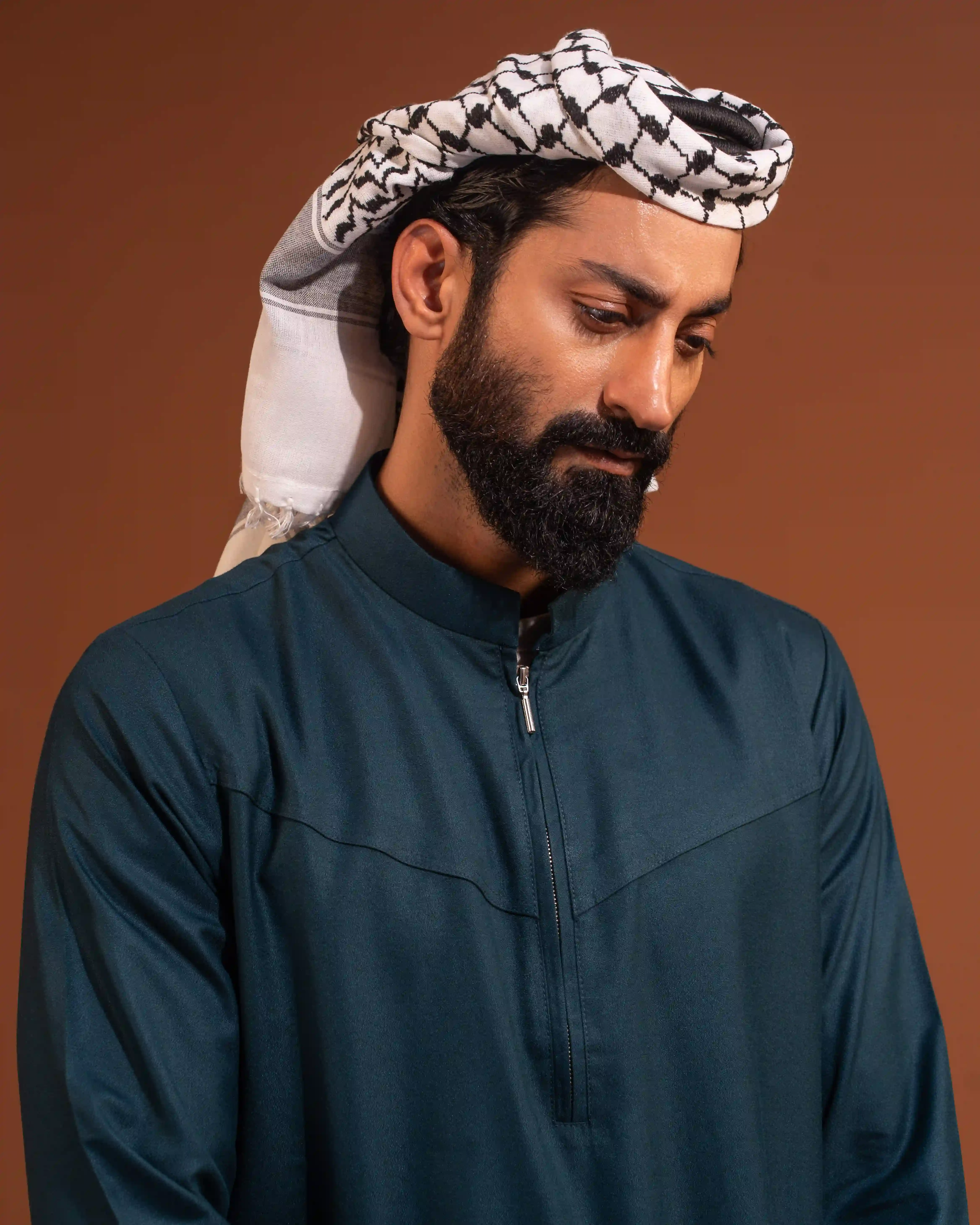 Designed with a modern Venn collar and a smart front zipper closure, this thobe blends classic modesty with contemporary detailing. The structured upper panel adds a sharp silhouette, while the breathable fabric ensures all-day comfort.