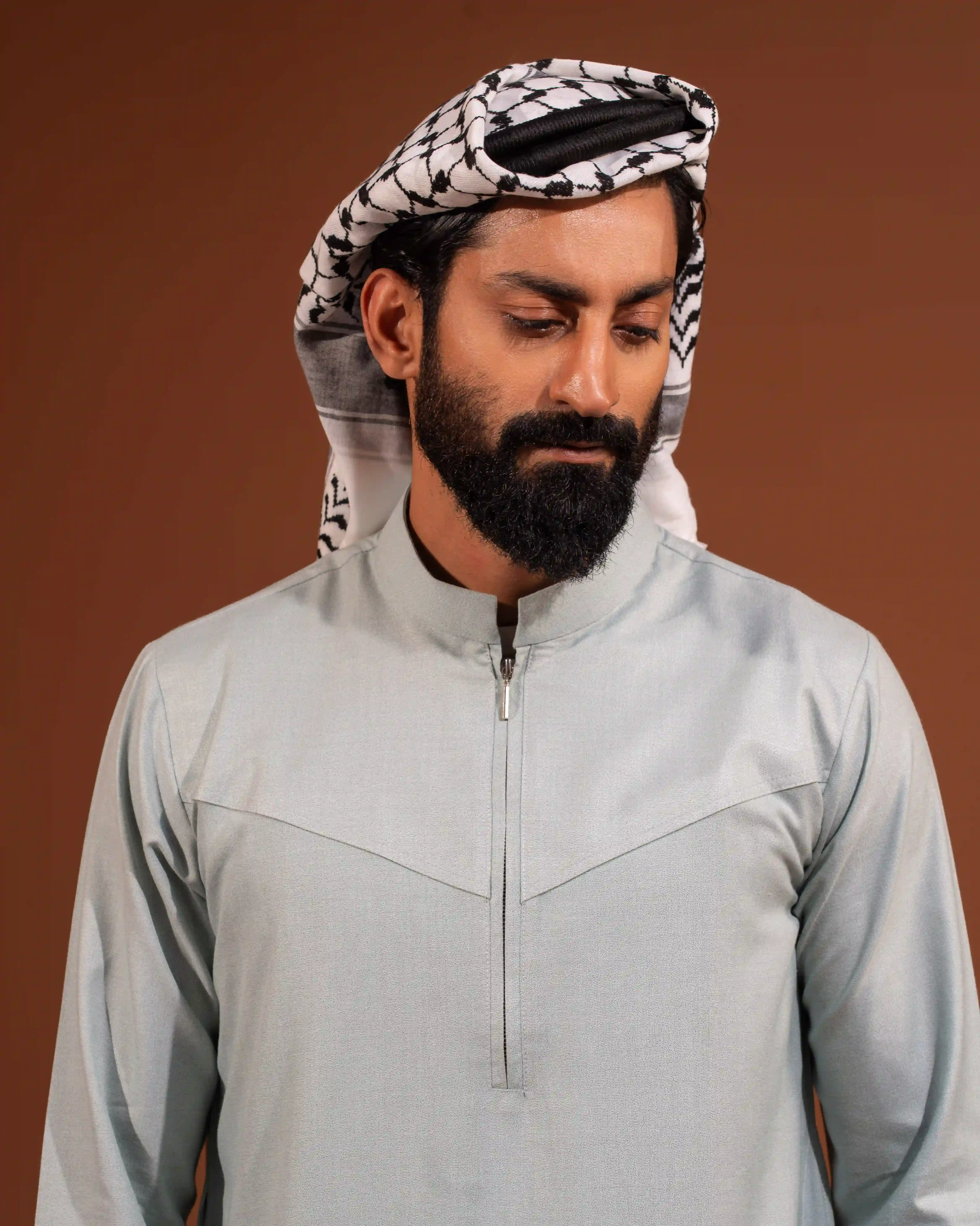 Designed with a modern Venn collar and a smart front zipper closure, this thobe blends classic modesty with contemporary detailing. The structured upper panel adds a sharp silhouette, while the breathable fabric ensures all-day comfort.