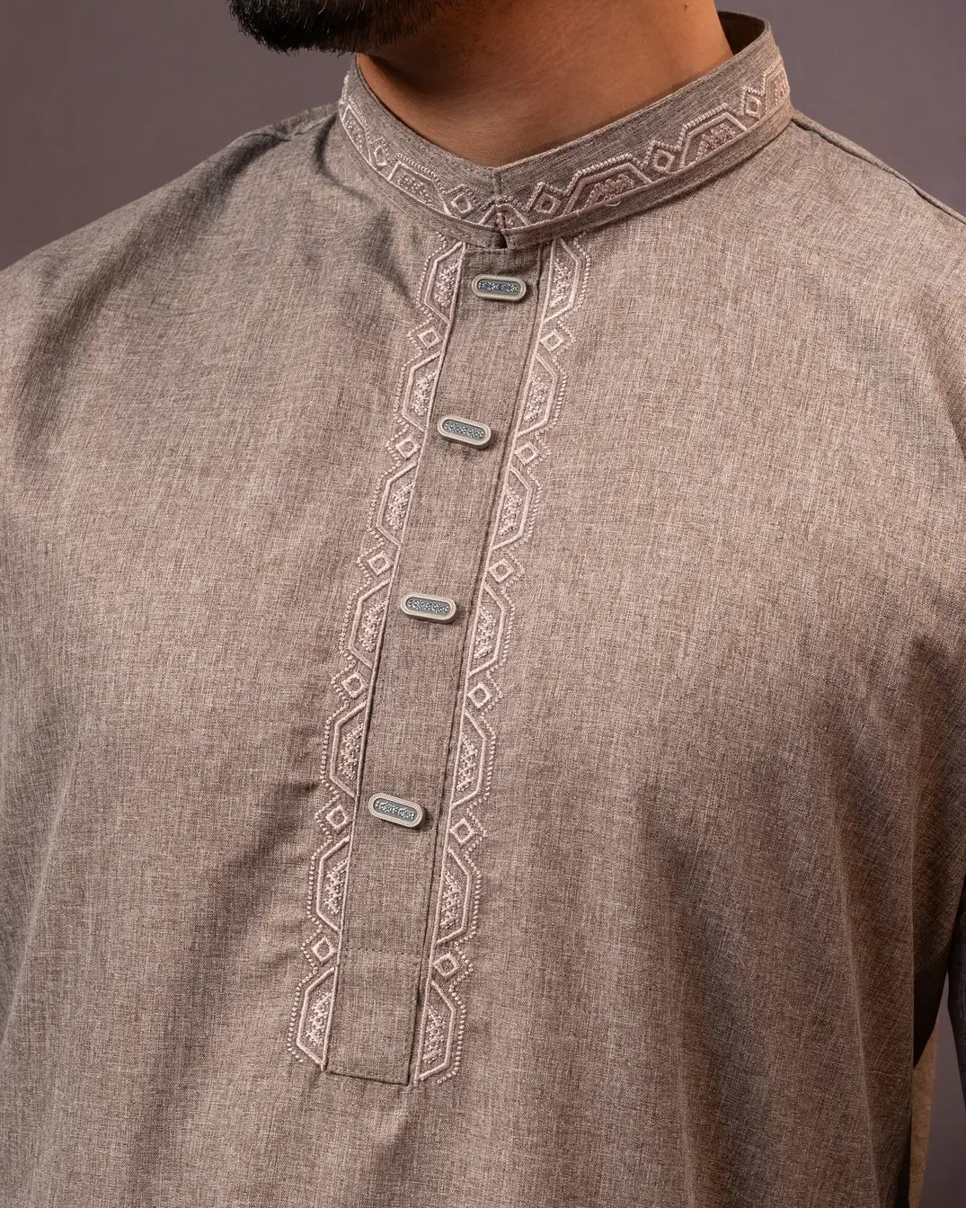 Men’s Premium Panjabi in Indian Cotton with Chest & Collar Embroidery