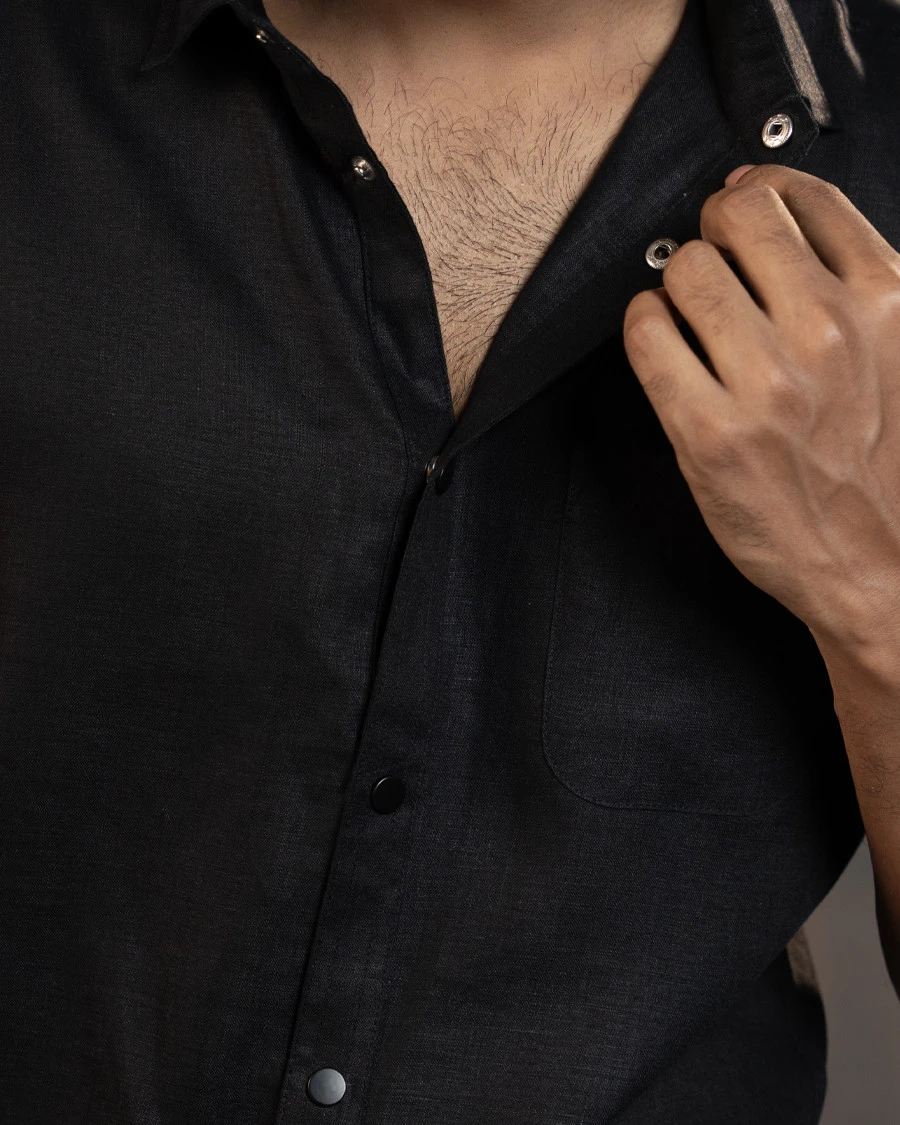 Refined simplicity meets modern elegance in this Men’s Premium Black Shirt from Barton Bangladesh. Expertly tailored using high-quality Remi Slab Cotton, this shirt delivers superior breathability and comfort, perfect for the Bangladeshi climate. The sleek snap button closure adds a contemporary edge, while the chest pocket offers functional style. Ideal for both casual and semi-formal occasions, this short sleeve shirt embodies Barton’s commitment to local craftsmanship and fashion-forward design.