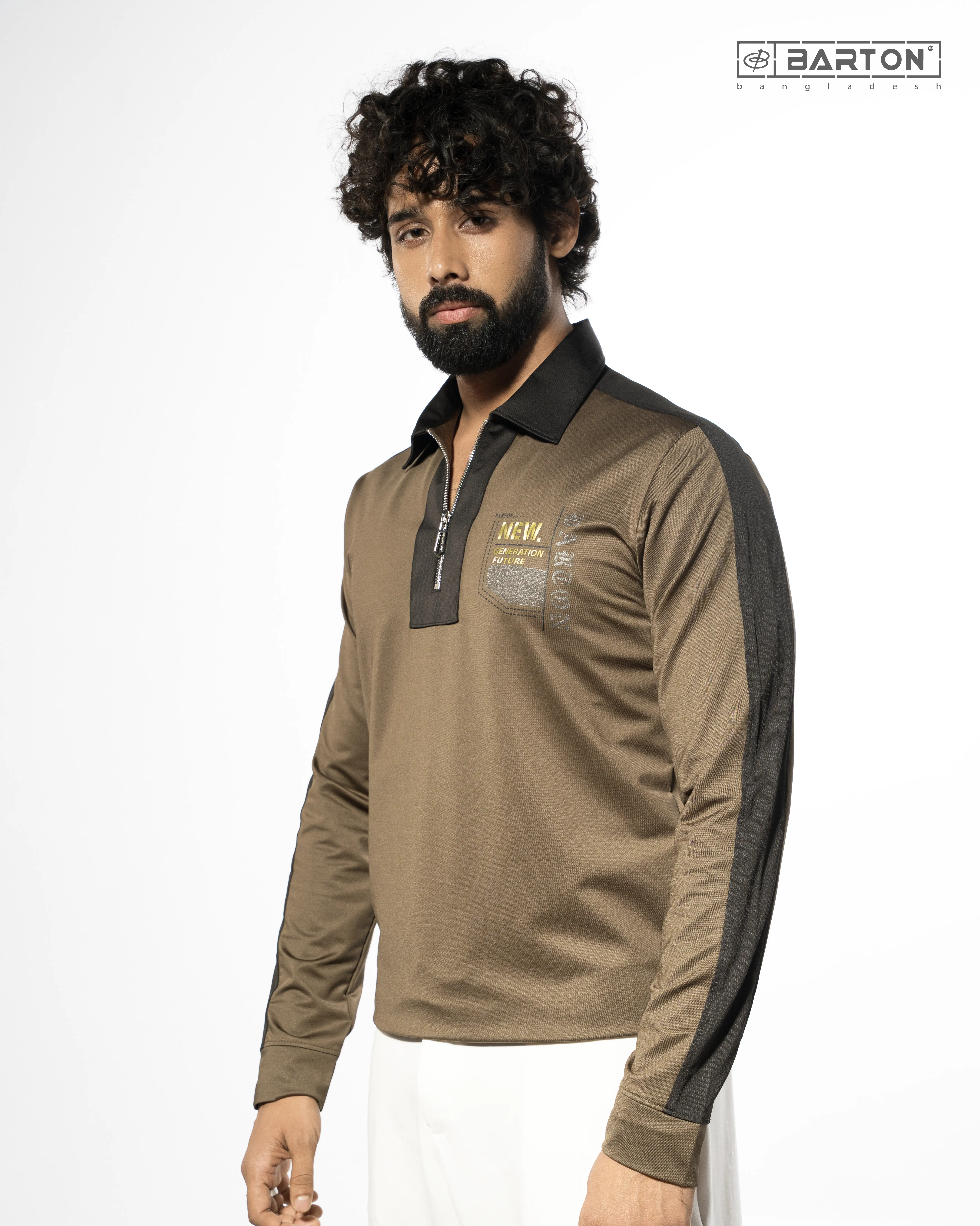 Designed with a stylish half-zip frontcontrast black collar, and dual-tone sleeve panels, it brings a modern sporty aesthetic. The left chest features a subtle futuristic printed detail that enhances its premium look. Whether you're stepping out casually or dressing up for a smart athleisure vibe, this piece fits every mood.